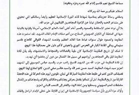 پیام مکتوب رهبر انقلاب به شیخ نعیم قاسم