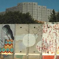 Two men scramble their way down a concrete wall while an Israeli military camera they've torn off the top dangles beside them./ The other - bare-chested - abseils down as video filmed by a third perso...