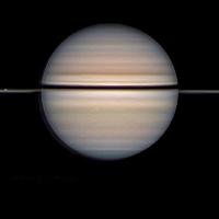 عکس روز ناسا از عبور قمرهاي يخي از مقابل حلقههاي زحل