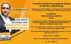دعوت دکتر ايرانبومي به تظاهرات براي جامعه بدون تبعيضات در فرانکفورت آلمان ساعت سه بعد از ظهر جلوي پارلمان شهر فرانکفورت